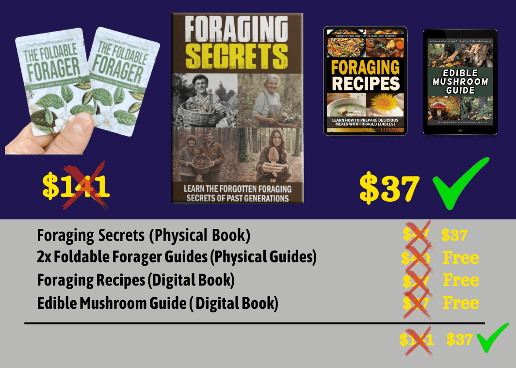 First, you’ll receive 2 Foldable Foragers. These wildly popular, wallet-sized guides are your ultimate field companions, offering quick and accessible information on identifying edible plants, flowers, herbs, mushrooms, and more.